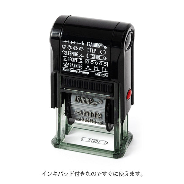 Midori Rotating Paintable Stamp - with Black Ink Pad - Daily Record Pattern