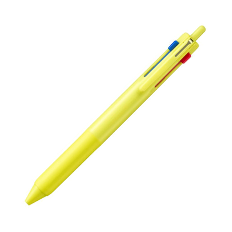 This is the first multi-colour ballpoint pen to adopt a new mechanism for knocking the black ink at the rear end. This mechanism allows you to knock the black ink without hesitation. The red and blue inks use the same slide knock mechanism as before, but the new mechanism will enable you to advance and release the ink regardless of which colour is advanced.