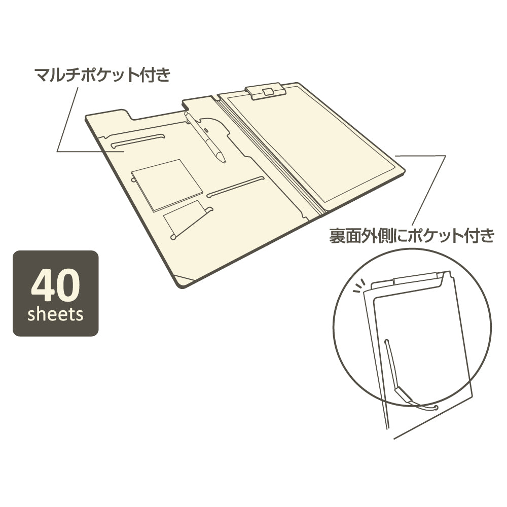 This clip file has multiple pockets and an outer pocket, making it easy to store and classify documents temporarily.